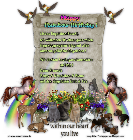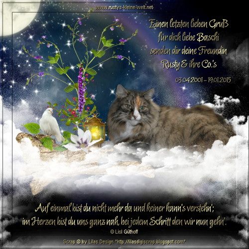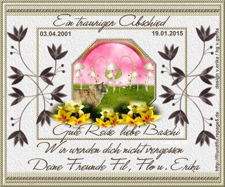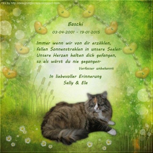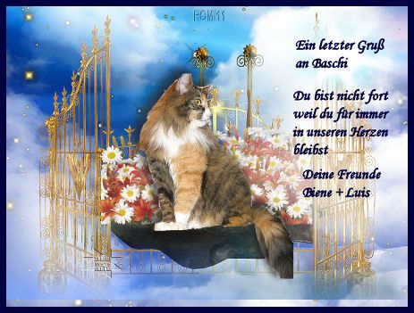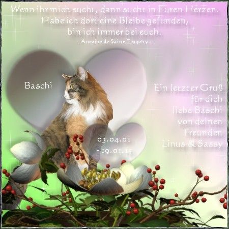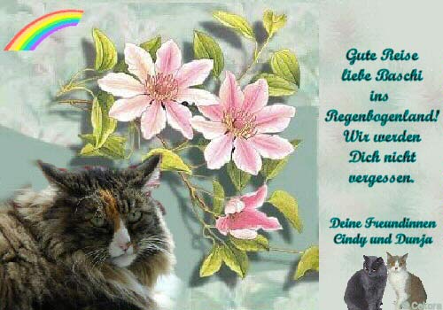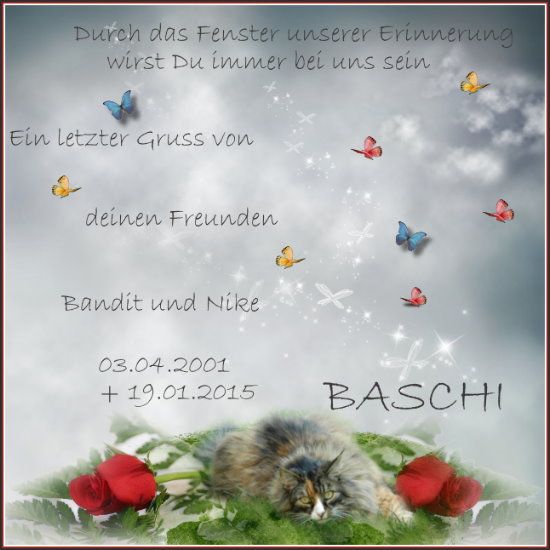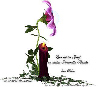 Ich möchte mich an dieser Stelle bei euch für euer Mitgefühl und Anteilnahme bedanken. Vor allem aber auch, dass mein Wunsch, eure letzen Grüße an Baschi mit Blumen zu gestalten respektiert wurde. Die Erinnerungsseite von Baschi ist so für mich unvergesslich und Baschi liebte Blumen über alles. Ich danke euch, für diese letzte liebevolle Geste.