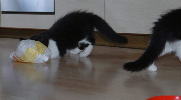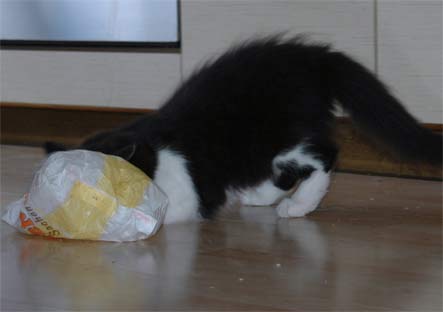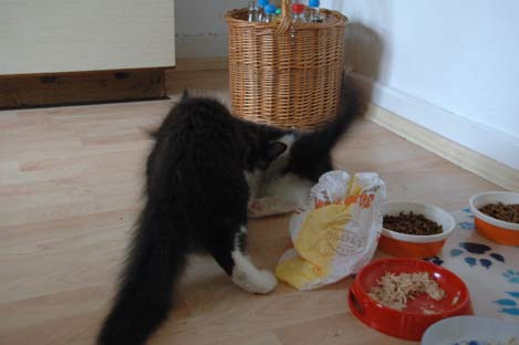 erst wird die Brötchentüte erforscht