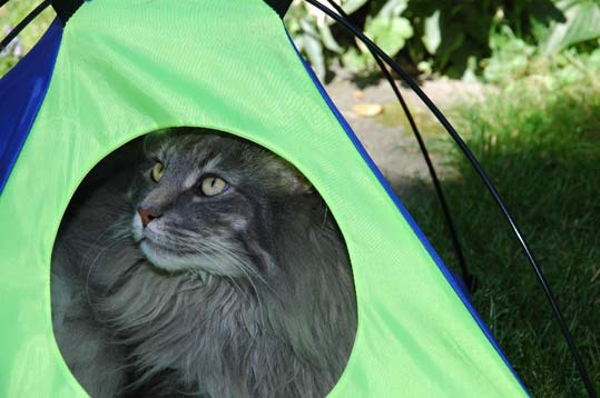 für unseren ganz persönlichen Katzentag hat unser Frauchen die komplette Campingausrüstung ausgepackt.