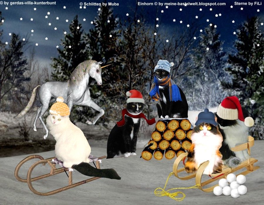 Copyright : Mützen © by http://www.monimaja.de, Schlitten mit Deko @ http://scrapandtubes.blogspot.com, Mützen & Schal © by littledesign,