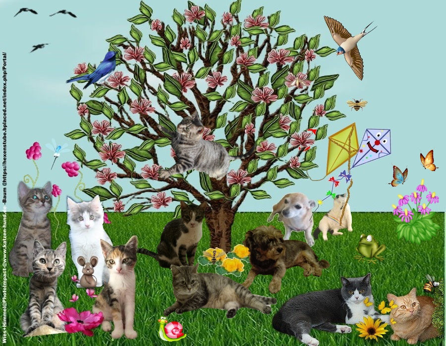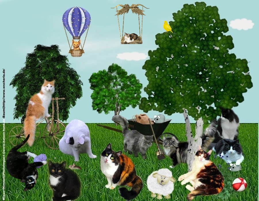 Waldkatzis: Schubkarre,Spaten und Baum sind