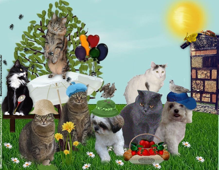 Cindy: Blümchen, Eingenmaterial: http://www.bkh-cekora.de/Josie & Bobby:Blumen,Hütte,Sonne und Schirm : http://littledesign.de lou & Flocke: Hüte,Korb,Möwen & Ballons @ von Erika Jella & Jacko: Fliegen,PSP-Stempel,Insektenhotel,Blümchen,Fliegenklatsche,Bank @Heidrun http://hei-lei.de/ |