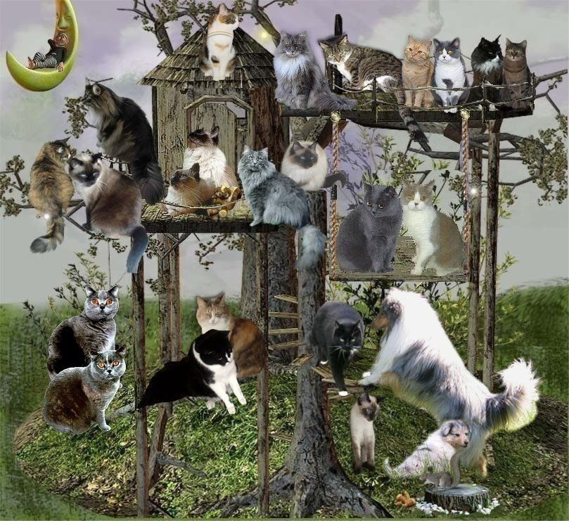 So, nun könnt ihr alle um, auf oder im Baumhaus Platz nehmen. Die schönen Baumhäuser sind von Monika, der Dosi von Filou gebastelt worden. Vielen Dank dafür. Wir haben den Hintergrund dazu gemixt