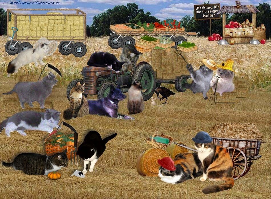 Wir hoffen auf viele Erntehelfer. Es gibt ordentlich Korn zu ernten und auch ganz viel Stroh heimzubringen. Mia und Mixi ließen sich nicht davon abhalten, Unsinn mit dem Heuhaufen anzustellen. Vielleicht hat ja auch einer von euch Lust, den fleißigen Erntehelfern einen kleinen Imbiss zu bringen. Arbeiten macht Durst und Hunger.