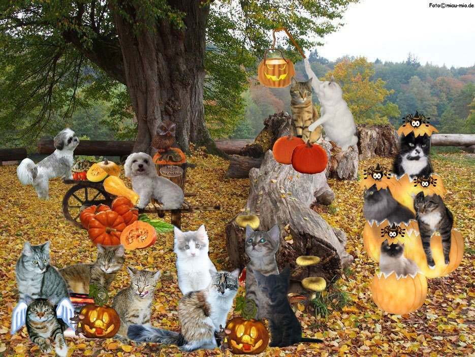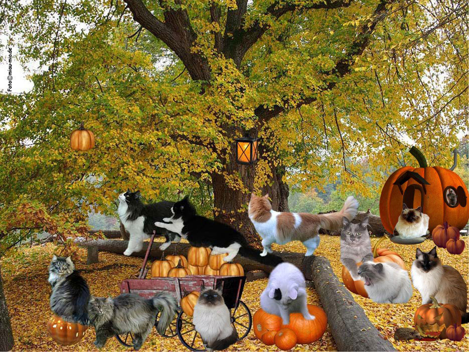 Sophie + Pauline: Kürbisse, Igel + Laub © by Tina, Luis: Kürbiswagen © by http://Hexenstube. bplaced.net