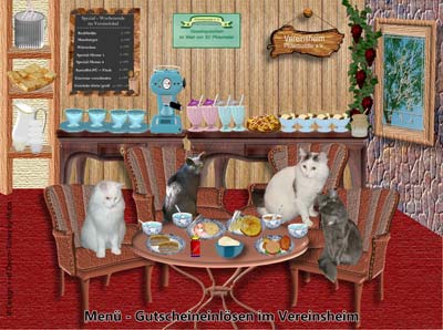 auch mit Pfotentaler bezahlt werden. Die Raummiete beträgt 30 Pfotentaler und ist an die Vereinswirtin zu zahlen. Einübens s Speisen und Getränke. liebe Grüße die Großgrundbesitzer mit der Geschäftsführung |