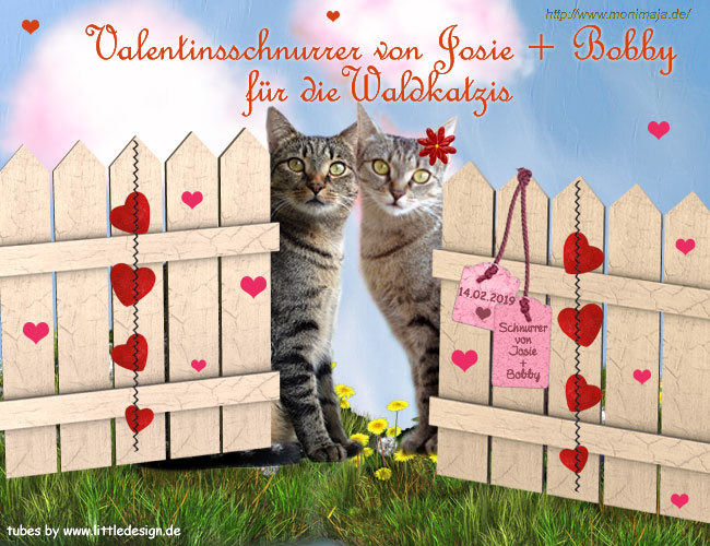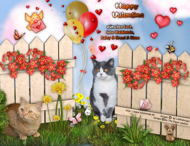 Alles ganz einfach. Schmückt die Pforten zum Valentinglück und schickt das Bild per E-Mail an baschi@waldkatzenwelt.de . Bitte keine Rahmen um das Bild setzen denn wir wollen alle hintereinander packen und bitte nicht das Dateiformat und bitte an das Copyright denken. Jetzt sind wir sehr auf eure Werke gespannt