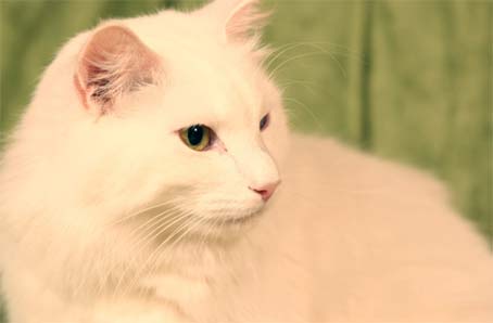 Norwegische Waldkatze weiß mit zweifarbigen Augen